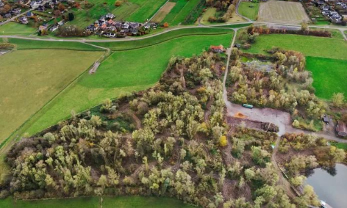 Op het oude terrein van de steenfabriek in Maurik zijn onlangs bomen gekapt na stormschade. Volgens de Dijkwacht lijkt het veel op voorbereiding van wegenaanleg. © William Hoogteyling